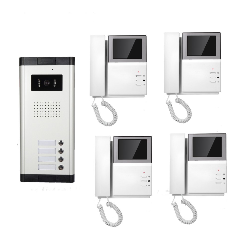 4 फैमिली मल्टी अपार्टमेंट वीडियो डोरबेल डायरेक्ट बटन मल्टी अपार्टमेंट सिस्टम हैंडसेट 4.3 इंच स्क्रीन